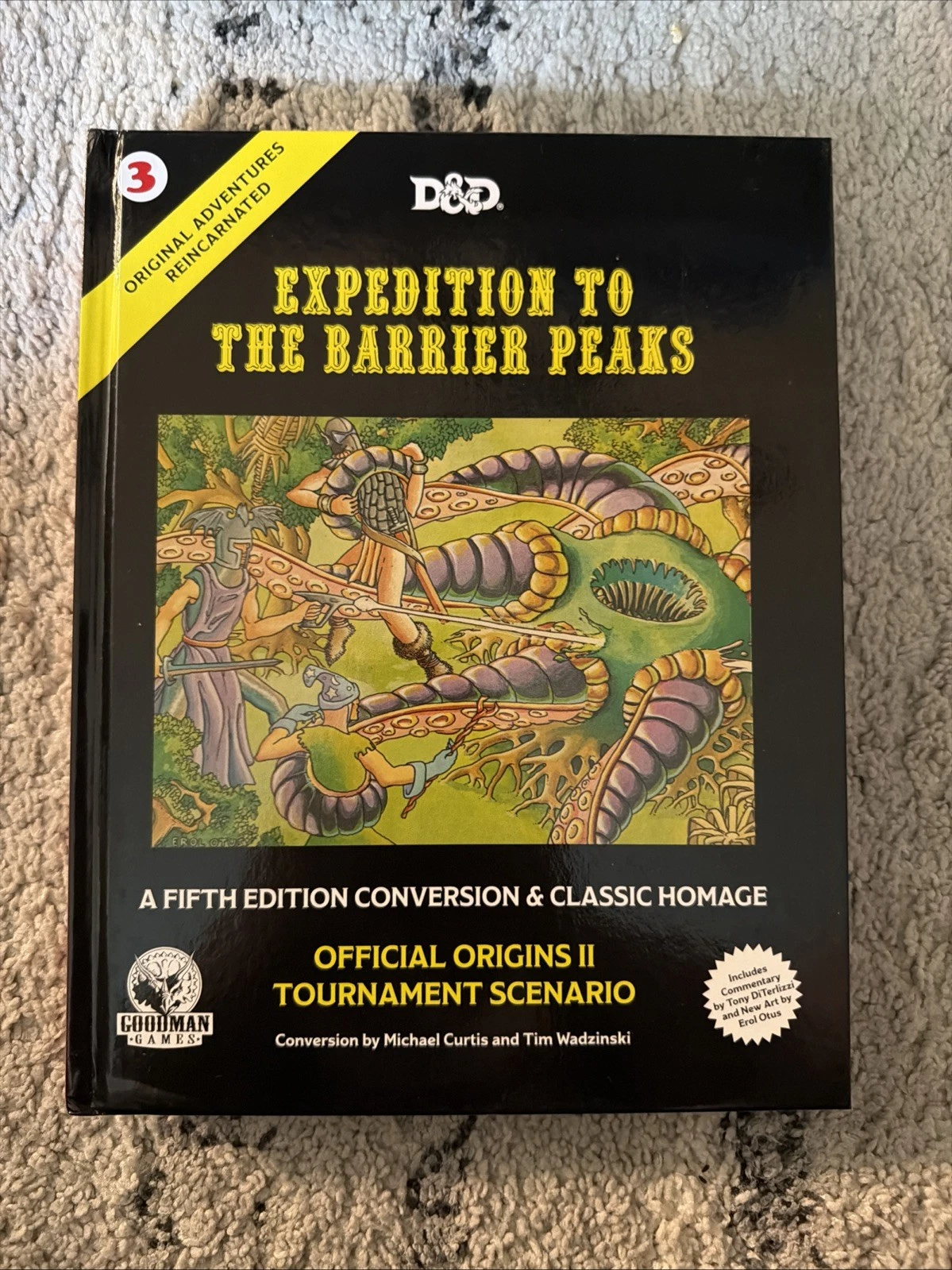 A 5e conversion of the classic S3: Expedition to the Barrier Peaks. Players explore a crashed spaceship in a fantasy setting, encountering aliens, robots, and bizarre technology.